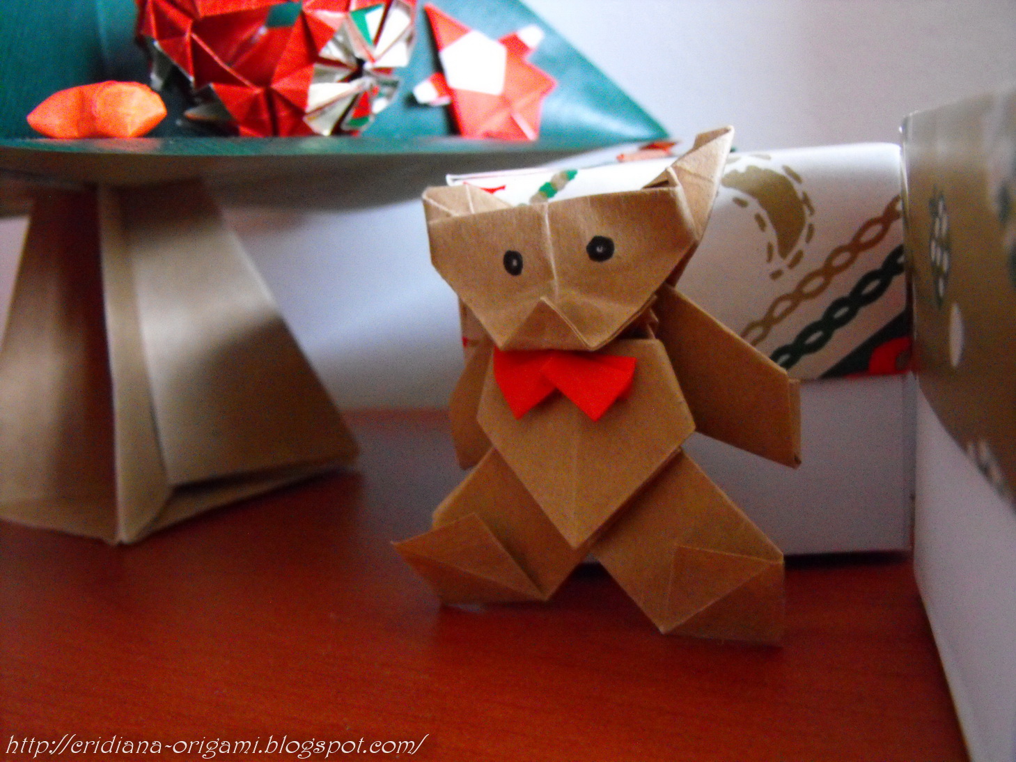 Acest model de bradut este preferatul meu, l-am mai facut si acum 2 ani, dar nu m-am gandit ca poate fi impodobit pana cand nu am vazut acest bradut, impaturit si impodobit de Sara Adams.